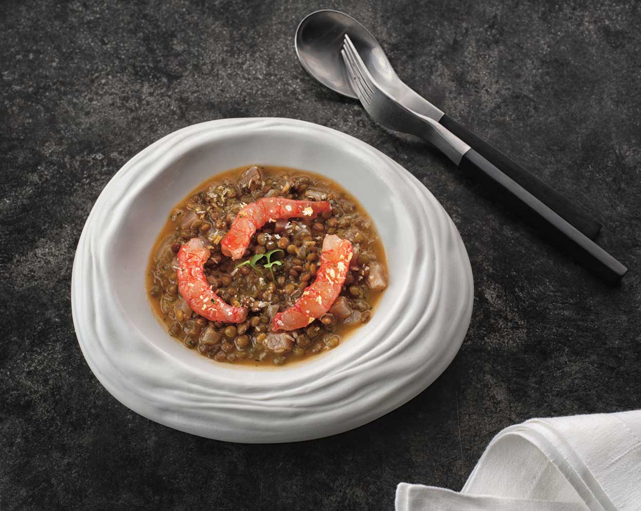 Recetas de Martín Berasategui Cazuela de gambas rojas con lentejas verdes