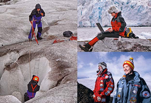 El espeleólogo Adolfo Eraso es la inseparable ‘pareja’ científica de Karmenka. Desde su proyecto Glackma llevan 20 años estudiando la evolución de los glaciares como sensores naturales del calentamiento global. Fotos: GLACKMA.ORG